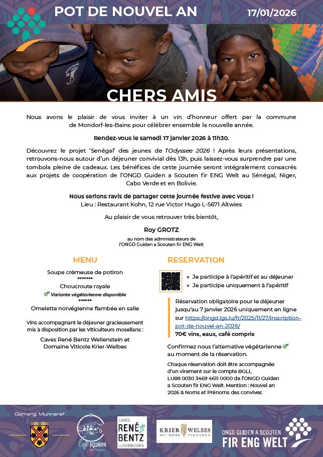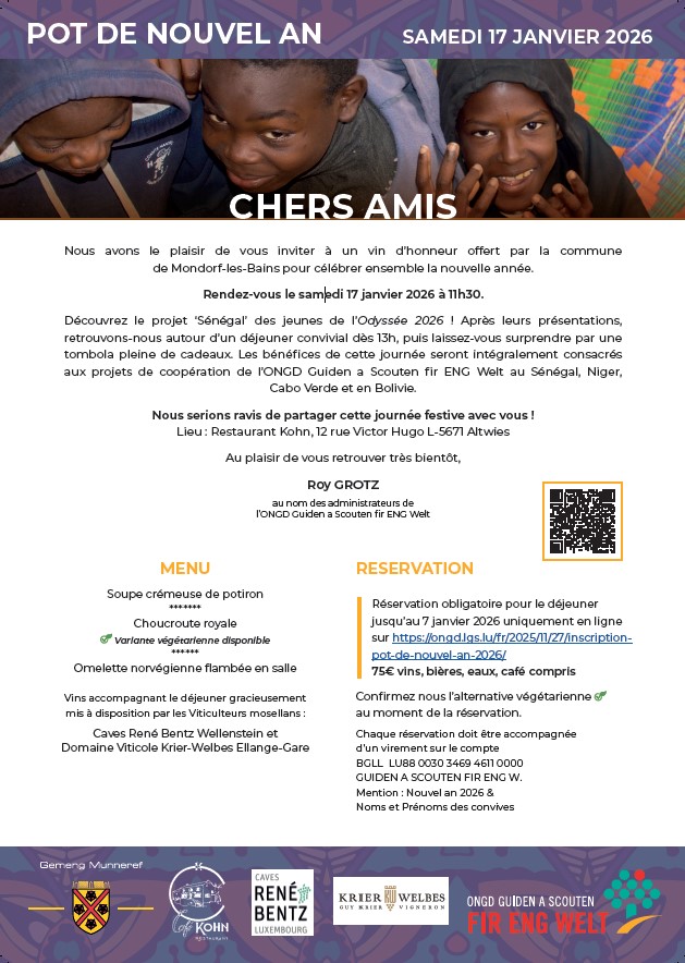 au nom des administrateurs de l’ONGD Guiden a Scouten fir ENG Welt